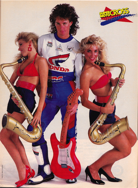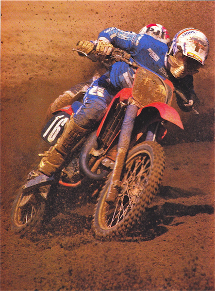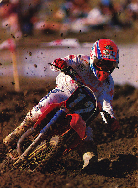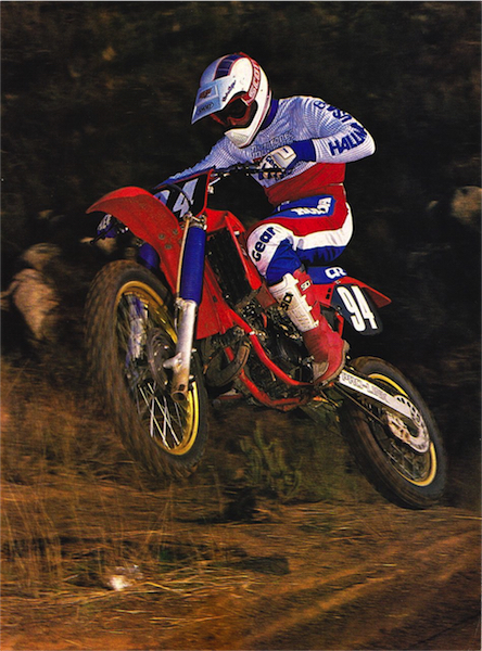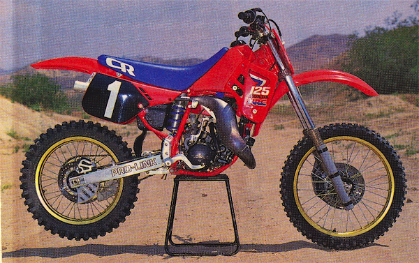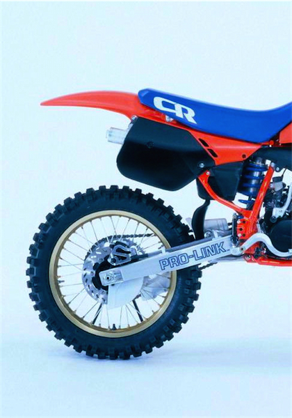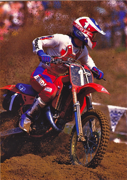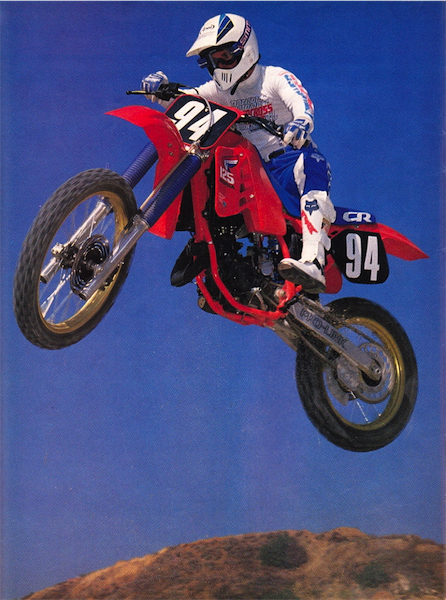 In 1987, nothing was as hard hitting, high jumping or hot handling as the Honda CR125R. Reigning 250 National and Supercross champion Ricky Johnson demonstrates. |