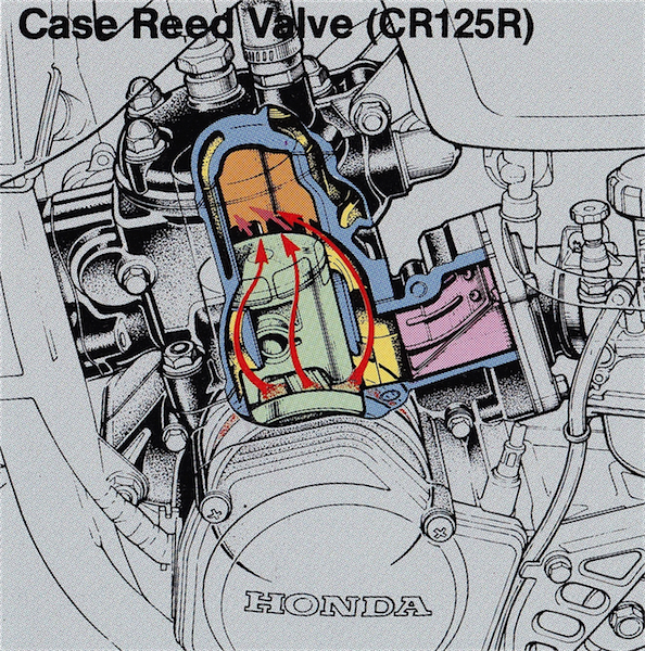 Deep Breather: For 1987, Honda ditched the motor that had dominated racing in 1986 and spec’d out an all-new case-reed mill. The new case-reed design offered more overall port area for better breathing and a more compact profile for better weight distribution. The CR125R would retain this intake configuration until its demise in 2007. |