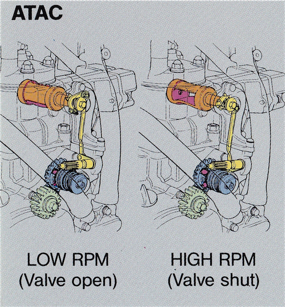 For 1987, Honda completely redesigned the ATAC (Automatic Torque Amplification Chamber) system they had been using since 1984. They enlarged and repositioned the resonance chamber to be closer to the exhaust port and did away with the problematic butterfly valve in favor of a more precise rotating drum-valve. The result was better sealing, increased flow and much better performance. |