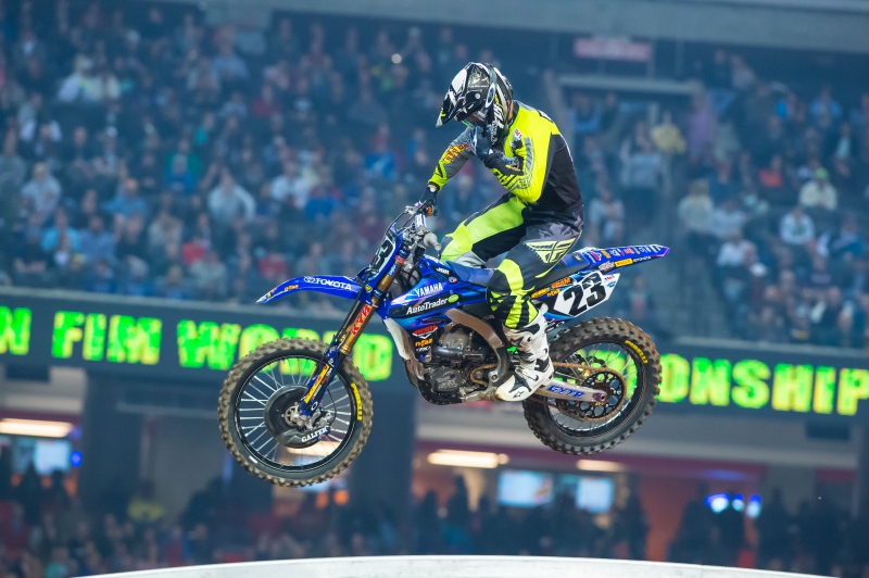 In Atlanta, when you hit a 3-foot tall jump sitting down in 3rd gear wide open after a set of whoops to quad a section, sometimes things go wrong and you don’t make it. And when you don’t, it isn’t pretty. He crashed hard but,in a way, he got lucky not to end his season right there. In the main, he was 15th on the first lap and he hasn’t shown any good rides yet coming from the back. He was in traffic at A3 and had a tough time to ride his own race and make moves. He got passed by Eli late in that race. Saturday, I am not sure what happened but he yardsaled in the whoops. When he’s in front right off the start, he’s lethal and has won two races like that already. But, he will have to change his approach when he starts mid-pack. Whatever he’s doing in that situation so far this season hasn’t worked yet. Do I think having Aldon on his side would change any of that? I doubt it…