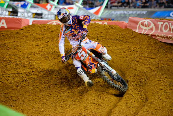 Tonight was tough. The track was real technical, especially in practice with the ruts and stuff. You’d have to be so precise that it made it very tough. You’re holding your breath. By the night just everything, the trannies were really kind of tough. I think it was one of the busiest tracks. I think a lot of people are going to say they didn’t like it because it was really demanding, and it was. My heart rate was up there and we were pushing. No two times did you hit the whoops the same. And nobody feels comfortable when it’s like that. It was just tricky and challenging.