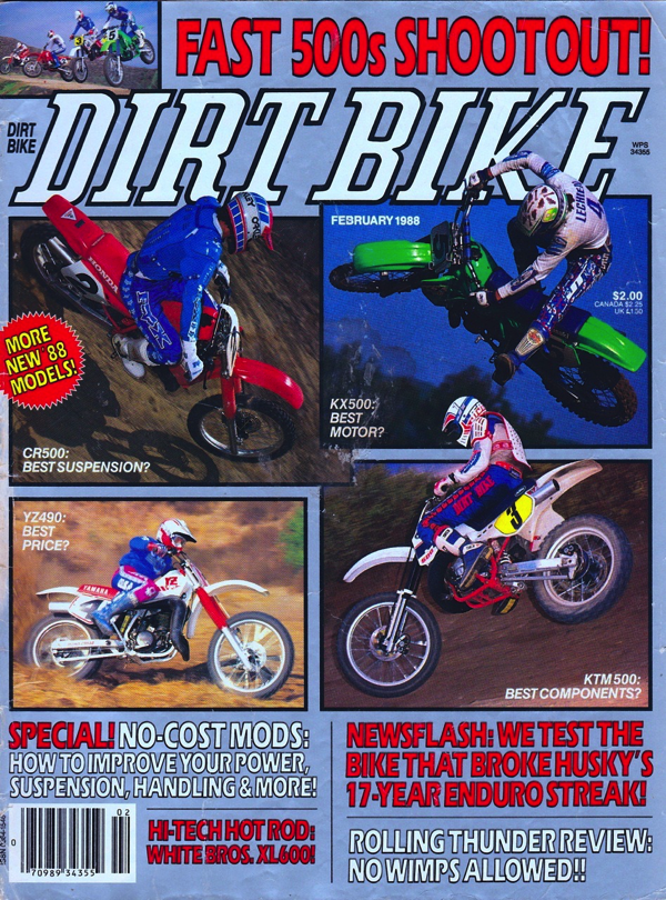 Super Moto Cross magazine trimmed its 500 shootout down to only the three Japanese in 1988. |