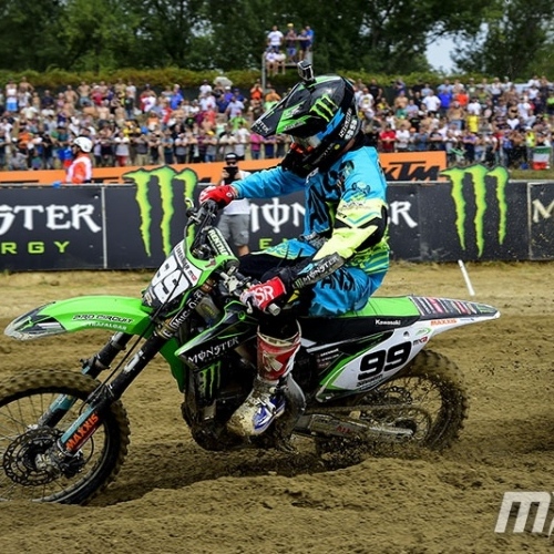 In MX2 Jordi Tixier’s hopes of a second world title ended when he dislocated his wrist in timed qualifying, the injury may put him out for the season.