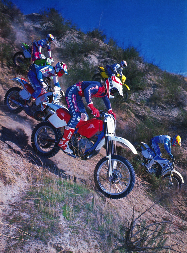 After 1986, only the Kawasaki KDX200 remained as a Japanese alternative to the European enduro mounts. Even though there were few off-the-shelf alternatives, that did not mean there were not Japanese machines blasting through the trees back east and across the desert out west. Most common of course, were the converted motocrossers, which could be made into a competitive mount with very little modification. Usually a larger flywheel, bigger tank, re-valved suspension and a spark arrestor were all that was necessary to transform a CR, KX, RM or YZ into a decent off-roader.