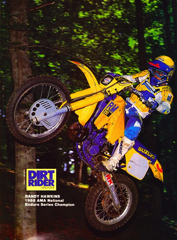 In 1988, talk began in earnest that the Japanese were indeed getting serious again about the off-road racing market. After years of ceding the class to KTM and Husky, both Suzuki and Kawasaki made major pushes with teams racing converted motocrossers against the Euros. This renewed interest would result in Suzuki’s first AMA National Enduro title and an end to Husqvarna’s unprecedented 16-year run of Enduro championships. Randy Hawkins’ win on a converted RM250 (the first of his seven AMA Enduro titles), showed that the Japanese could indeed be competitive in the enduro market if they poured their considerable resources into racing between the trees.