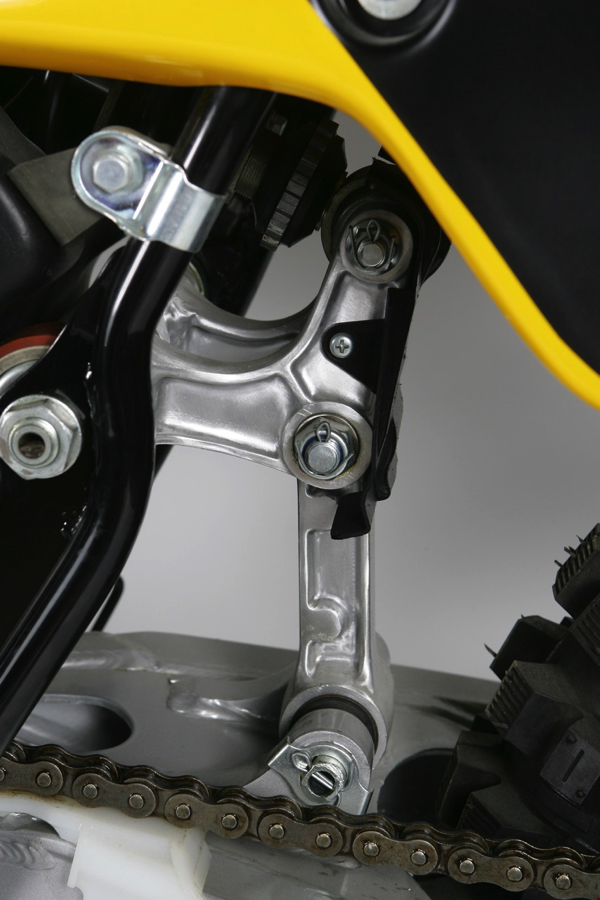 In the transition to the new Mono-X, Yamaha had chosen to stick with the same basic shock placement they had used since 1975. While this allowed them to leverage a decade of development, it unfortunately did nothing for the YZ’s chassis dynamics. The large and heavy DeCarbon shock used on the YZ ran basically the whole length of the bike and was placed up high under the tank and seat. This made the bike both wider and less nimble that the competition.
