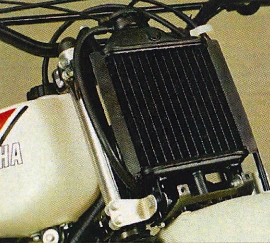 Yamaha had used this large triple clamp mounted radiator design on all its liquid-cooled race machines since Bob Hannah’s OW27 in 1976. While less prone to crash damage than competing designs, issues with seal leakage, weigh and handling would lead the Tuning Fork Company to adopt a Honda-like arrangement in 1983. |