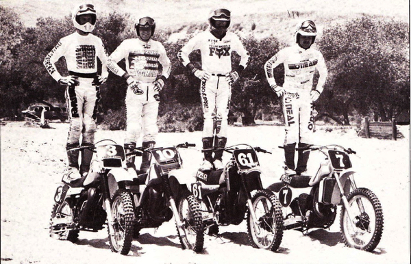 Dirt Bike Magazine’s Paul Clipper, Tom “Wolfman” Webb and Rick “Super Hunky” Sieman try to decipher the new YZ’s secrets in 1982. Photo credit: Dirt Bike Magazine |