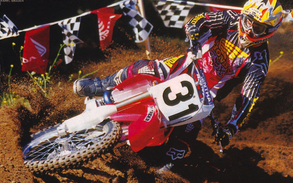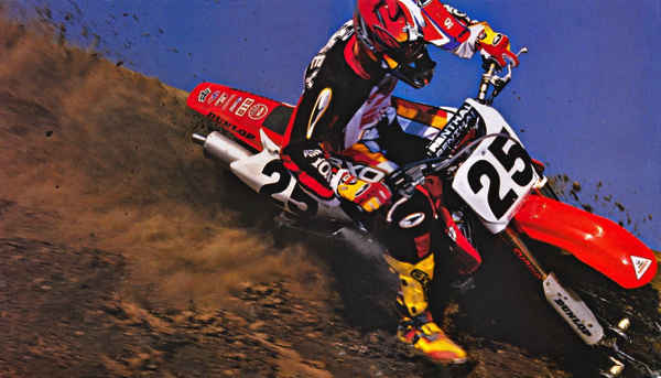 With the development of what would eventually become the CRF450R, Honda’s engineers had the benefit of looking at what worked and what didn’t on the original YZF. The Yamaha was certainly an amazing machine, but it was not perfect. The DOHC five-valve motor was powerful, but also easy to stall and difficult to relight in the heat of battle. The starting procedure was incredibly complicated compared to any two-stroke (or any kick-and-go XR for that matter) and accidently killing the motor often meant the end of your race. Compression braking was also a new experience for two-stroke aficionados, and the YZF really threw out the anchor when the throttle was chopped. Another annoyance was the nasty bog the YZF displayed if care was not taken with the throttle. If you whacked the throttle open suddenly (as one would do on any two-stroke), the YZF was likely to hesitate and throw you over the bars.