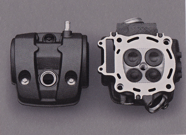 The Unicam layout allowed for a more compact head that both saved weight (a full pound according to Honda) and lowered the center of gravity of the motor. To further lower mass, Honda decided to not use the separate oil tank employed on the Yamaha. Instead, the Honda carried all of its vital fluids in the motor itself, with the motor oil and transmission fluid enjoying separate sealed systems. The advantage of this design was that it prevented contamination from the clutch and transmission from getting into the rest of the motor. The downside, however, was its greatly reduced overall oil capacity.
