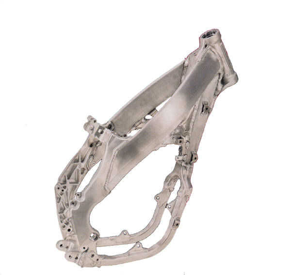 Originally introduced on the 1997 CR250R, Honda’s first generation aluminum perimeter frame was certainly trick, but less than stellar on the track. By 2002, careful refinement had worked out most of the kinks in Honda’s alloy design. |