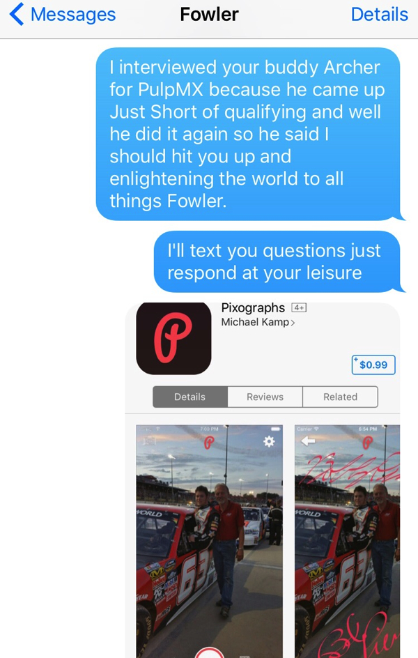 This also applies to those that cum up Just Short of making the main events. This season, Raper and Archer have both had the honor of getting interviewed for Just Short, and they enjoyed it so much that they went out of they’re way to finish Just Short again. Anyways, because I interviewed Archer last week, I asked him who else needed a little press, and he said I should hit up his buddy Michael Fowler…so I did.