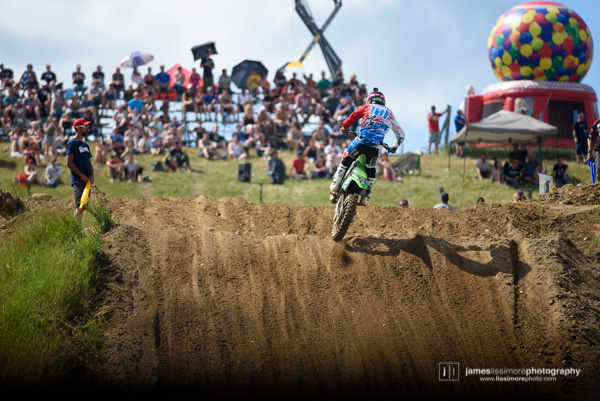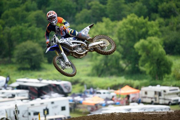 In MX1, Davi Millsaps early season dominance has subsided since a practice crash during the break left him unable to properly prepare for the Eastern swing of the series. In moto one, a lead was slowly chipped away by Matt Goerke before an uncharacteristic mistake allowed Georke by to take the win. In moto two, Millsaps never really got going and struggling to hold on with blisters, the points leader could only muster an 8th place finish.