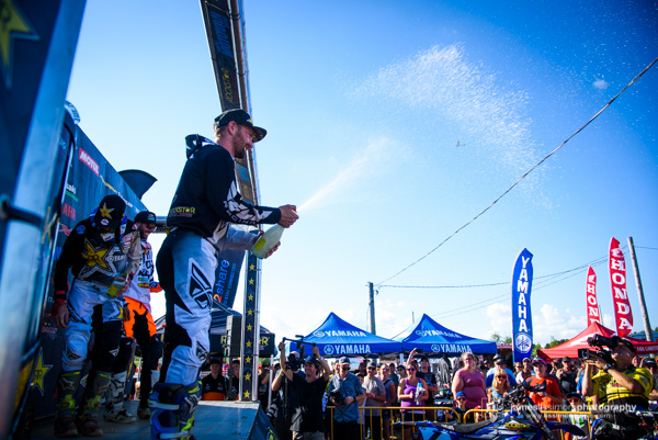 Rain showers in the morning led the way to sunny skies and warm temps by the time the motos came around and we were treated to great racing in both classes. It was an all out war in MX2, with riders Dakota Alix, Dylan Wright, Shawn Maffenbeier and Cole Thompson all taking turns leading but as has become the norm this year in the Canadian Nationals, it wouldn’t be without controversy, as double moto winner, Thompson, saw his second moto win relegated to a fourth place finish when it was determined he cut the track. The penalty allowed Dylan Wright to take his first ever overall victory.