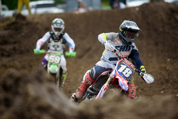 | North Carolina’s Chandler Lindsay made the trip up to race the TransCan but an off-line venture in the MX2 moto left his bike burried in the mud. He would finish 8th in the Superfinal. |