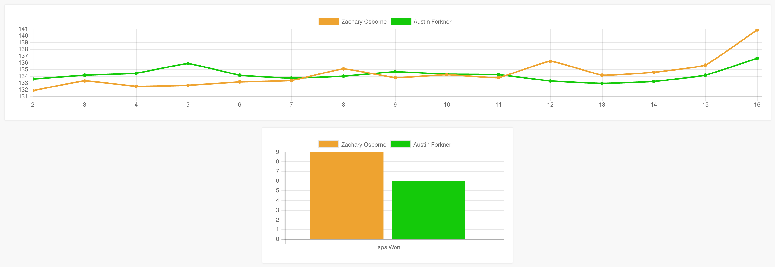 Positions gained by Austin Forkner from start to finish. His first logged position was 39, he finished 11th. The whole argument about cutting the track to get to the mechanic’s area comes into play here, so do with that what you will.