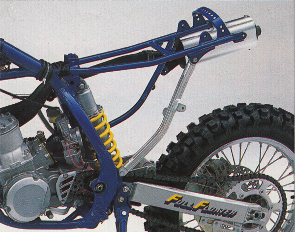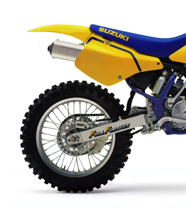 Not your father’s Full Floater: The rear suspension on the 1989 RM250 shared its name with Suzuki’s original and ground-breaking single shock suspension, but none of its actual design. While good at charging, its choppy performance on small impacts left it a notch below the KX250 in 1989. Photo Credit: Suzuki |