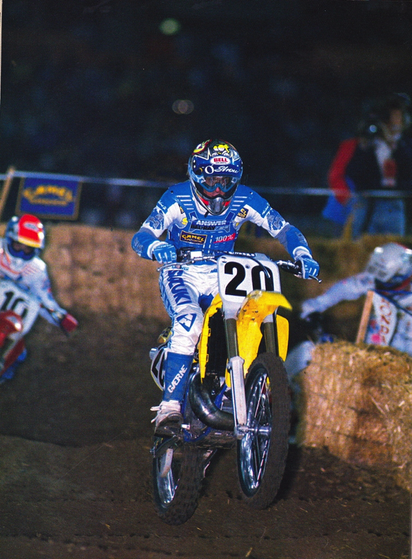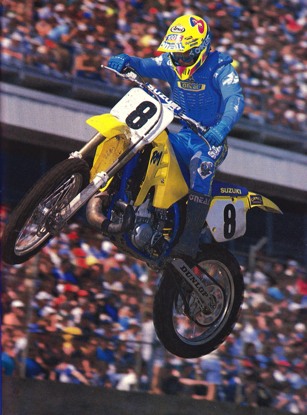 In 1989, Palm Harbor, Florida’s Ronnie Tichenor was Suzuki’s up-and-coming star. Indoors, he would take the new RM to a 7th overall, while outdoors he would fare better, powering his Suzuki to 4th overall in the final standings. Photo Credit: Fox Racing |