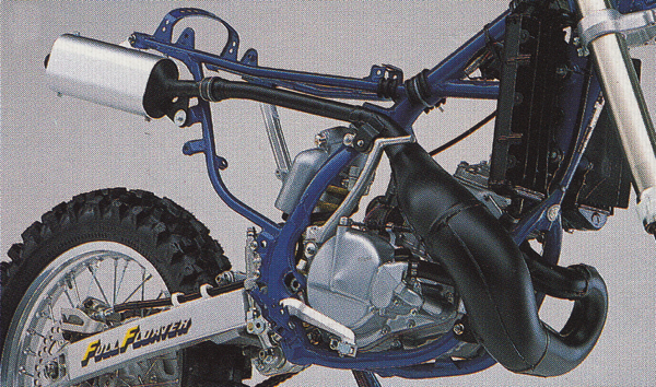 A new “low boy” pipe for 1989 lowered the RM’s center of gravity by relocating the pipe 2.9 inches lower on the frame. Photo Credit: Suzuki |