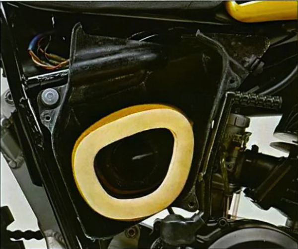 One major weak spot with the ’78 YZ was its porous stock airbox. Without a swap to an aftermarket filter and a bucket of grease, it was sure to suck dirt and ruin your top-end in short order. Photo Credit: Yamaha |