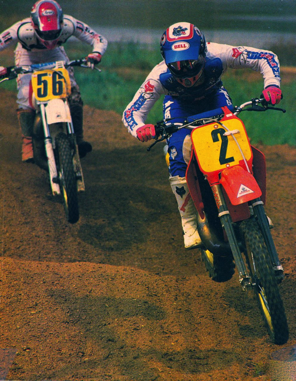 | Carl: In 1985, Broc Glover completed one of the most heroic feats in motocross history by taking a lightly-modified stock YZ490 to the 500 National Motocross title over David Bailey and his full-factory RC500. Photo Credit: Motocross Action |
