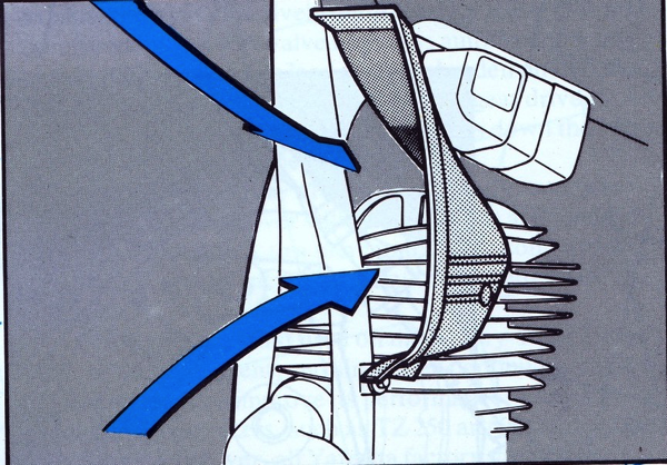 | Ramming speed: Detonation was a major issue on all the YZ490s and the problem never went completely away without having the head modified. Without the benefit of liquid cooling, Yamaha resorted to a ram-scoop on the left side of the frame to try and keep the big single’s temps under control. Photo Credit: Yamaha |