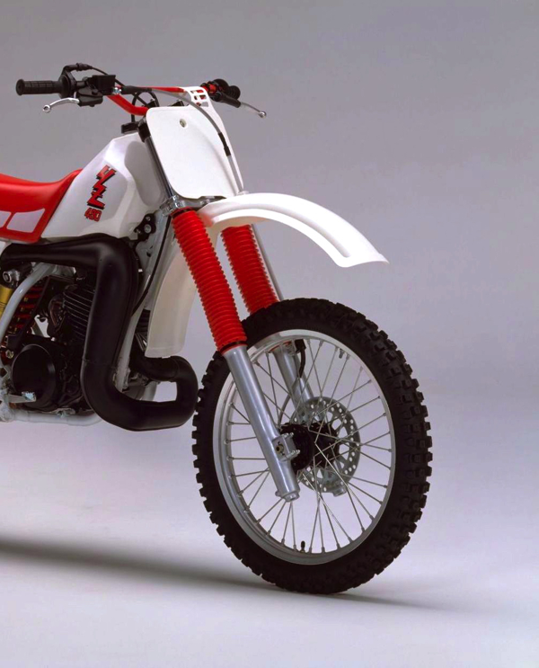 | In 1988, Yamaha boosted the stopping power on the YZ490 by upping the front disc diameter size from 220mm to 230mm. While competitive, the new stopper was still not as strong and trouble-free as the dual-piston Nissin unit found on the CR500R. Photo Credit: Yamaha |