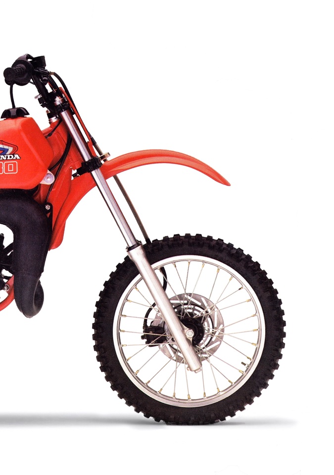 The only real chink in the CR80R’s armor was its lackluster suspension. Even in 1986, its 33mm front forks were on the small side and its springs and damping were too light for anyone above an absolute novice. Photo Credit: Honda