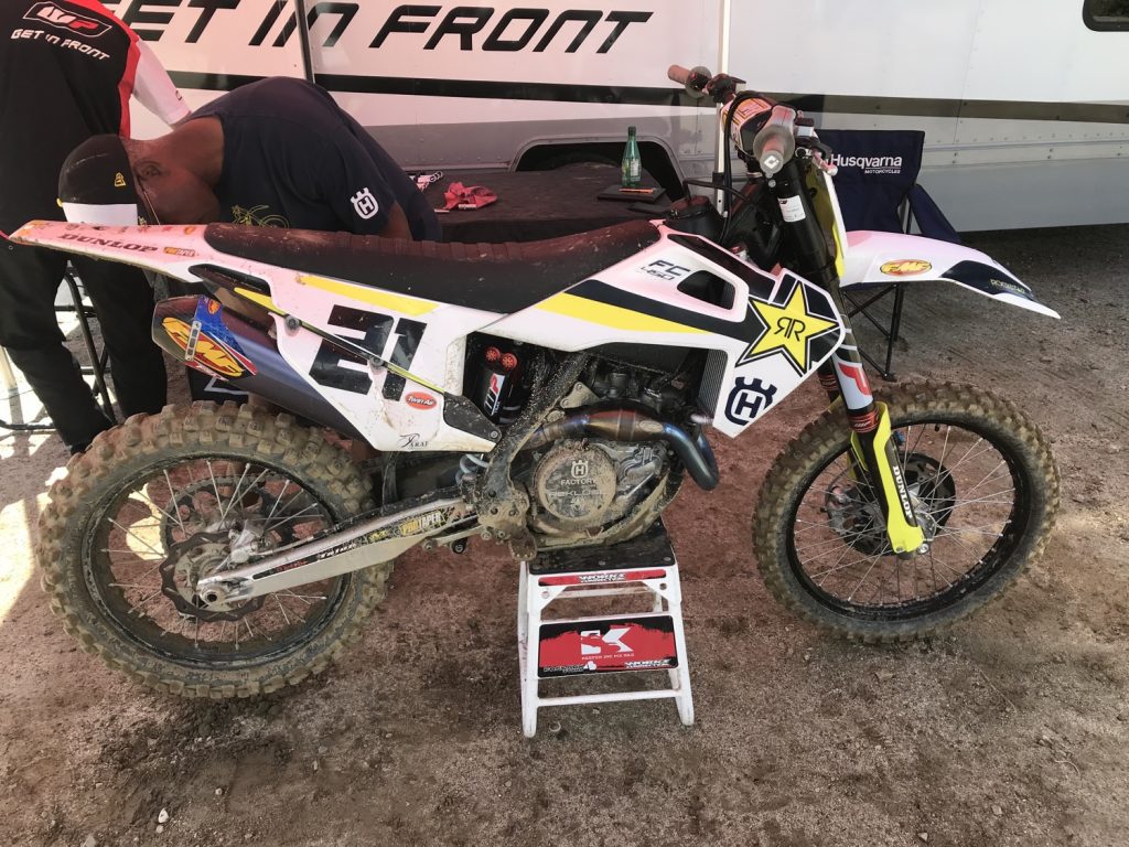 The Trax shock gave the rear of the Rockstar 450 machine a firmer feeling than the standard shock, but it wasnât so firm that it beat you up around the track. Unlike the CV fork, you will lose a little comfort on small bump absorption, but gain performance on bigger bumps on the track. Where the stock shock will blow through at the end of the stroke (high speed compression) the Trax shock holds up better and you are able to get more aggressive around the track. I can hit the faces of jumps harder and the Husqvarna will not give you an empty, low feeling sensation that the stock shock sometimes gave me. In order to combat that feeling with the stock shock I would have to crank up the high speed compression so much that I lost the comfort coming out of corners (and rear wheel traction). The Trax shock provides you with more high-speed damping and you still get a decent amount of acceleration comfort. I also noticed a little more connectivity to the the rear wheel (when hard on the gas) on flat corners with the Trax shock. The Trax shock is firmer so there is less wallow in the rear end when accelerating, so the rear of the FC450 tracks straighter and doesn’t upset the chassis. âBalancedâ is a great word to describe both ends of the Husqvarna Rockstar Edition now (with the cone valve fork and Trax shock). I have the Trax system turned âoffâ for my setting as I felt like it had more of a dead feeling (which is a feeling that I like). A âdead feelingâ is where the bike can be pushed hard into braking bumps or square edge chop and will not move or react as quickly. With the Trax âonâ the rear wheel followed the ground slightly better out of choppy ruts/corners, but reacted too quickly when coming into large braking bumps when entering corners. I would think the Trax system would benefit an off-road rider that needs his rear end to move and follow the ground more at higher speeds (think west coast off-road). I ran the sag a little higher at 103mm (rather than the standard 105mm) and this seemed to be the happy spot where the Husqvarna felt less rear end low. The Trax shock is very finicky to adjustments so make sure you only do very small 1 click increments as you will be able to feel each change you make.