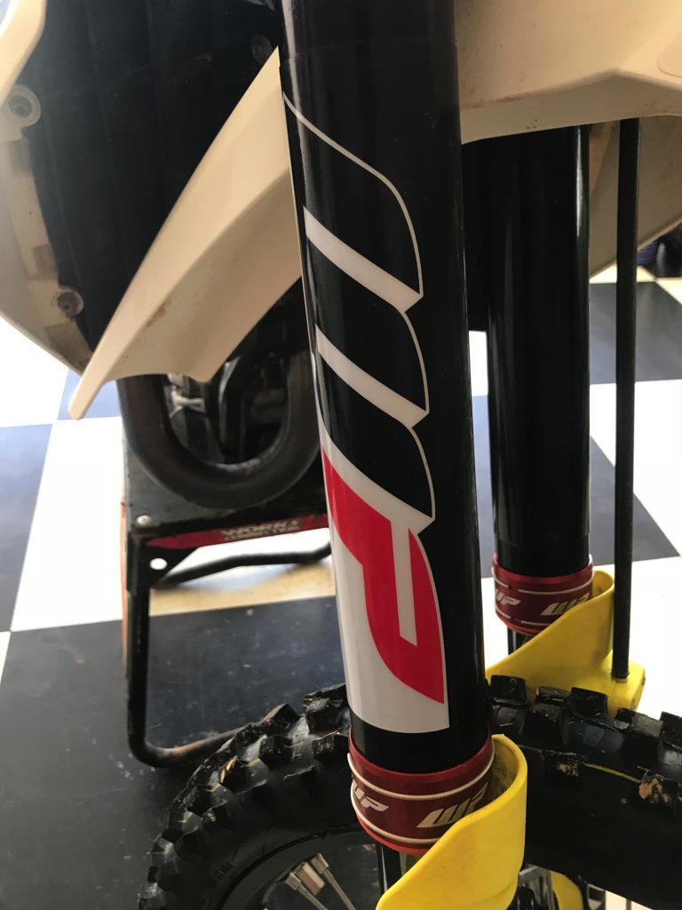 I have been riding the 2018.5 Husqvarna FC 450 Rockstar Edition A LOT. Over the course of only a few months I have over 50 hours on the test unit I have. I am in love with how well it works on the track, how easy it is to ride and how light it feels through corners. Yes, thatâs right even with the WP 48mm AER fork it is still pretty damn good. However, I canât leave well enough alone and must tinker with things to see if I could get the white edissssshhhh even better than where itâs at currently. I called the guys at WP to see about getting a set of their Cone Valve Forkâs and Trax Shock to see if this sucker can improve even more. The Cone Valve fork and Trax shock is basically WPâs A-kit option for us average dudes out there. Yes, it is expensive, but if you are in the market for close-to-factory level suspension, it is considerably less money than the Showa A-kit sets that are for sale. The Cone Valve fork and Trax sock can be purchased at any authorized WP dealer. Your dealer then can get you your own valving set up, but for this test WP valved my stuff for me directly. WP even offers the Cone Valve and Trax suspension for the Honda, Kawasaki, Husqvarna, KTM, and Suzuki models. So is it worth the money? I rode the stock suspension and Cone Valve/Trax set ups at several different tracks and here is what I came away with: