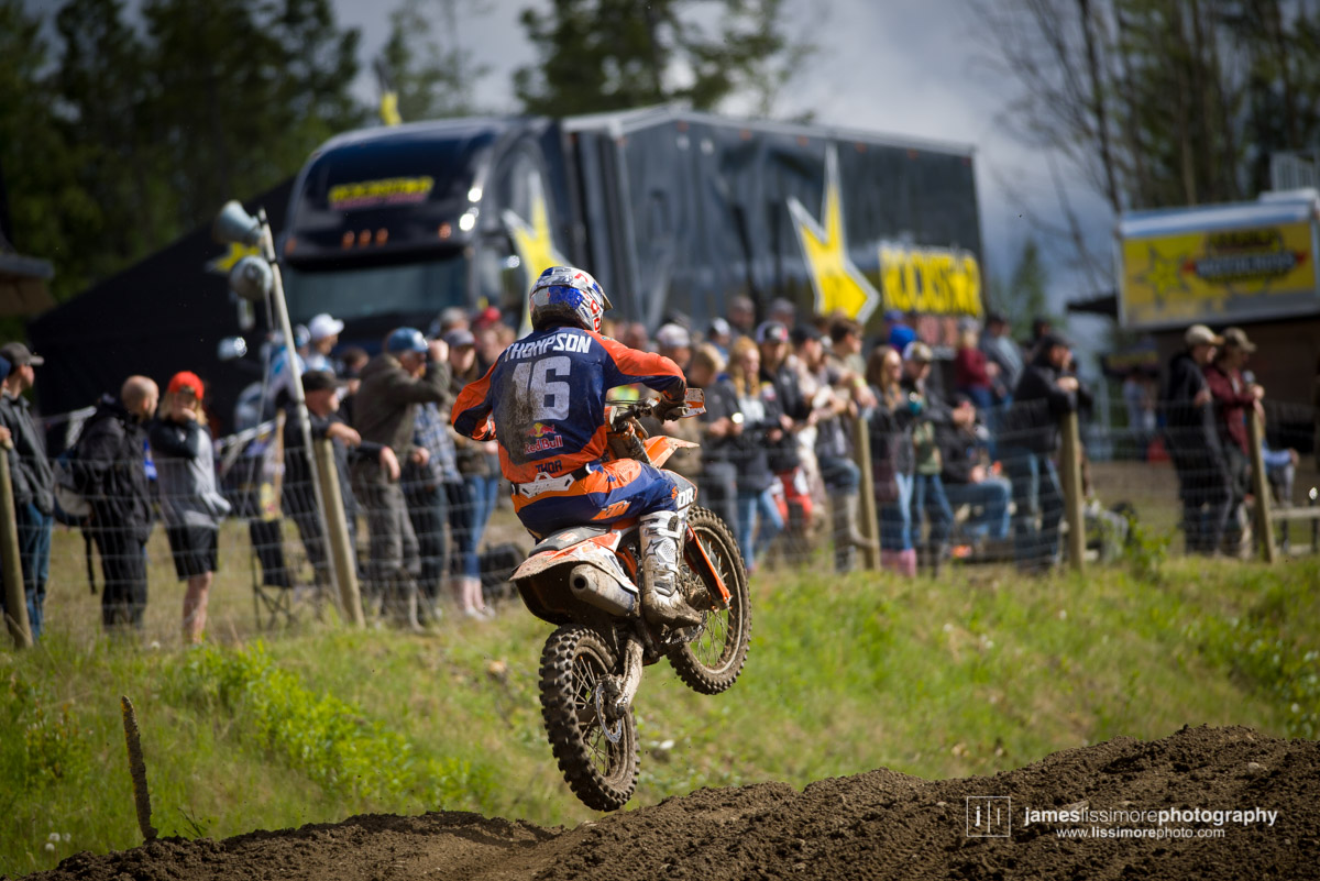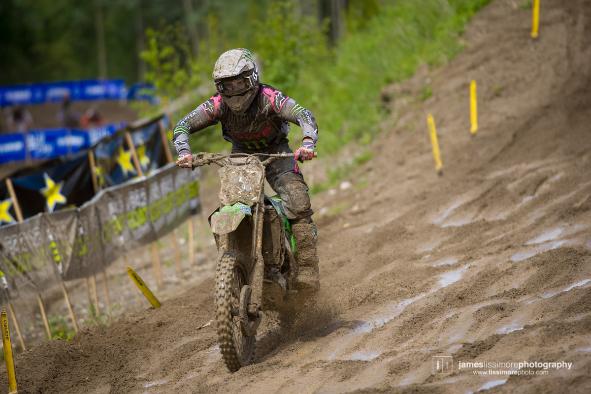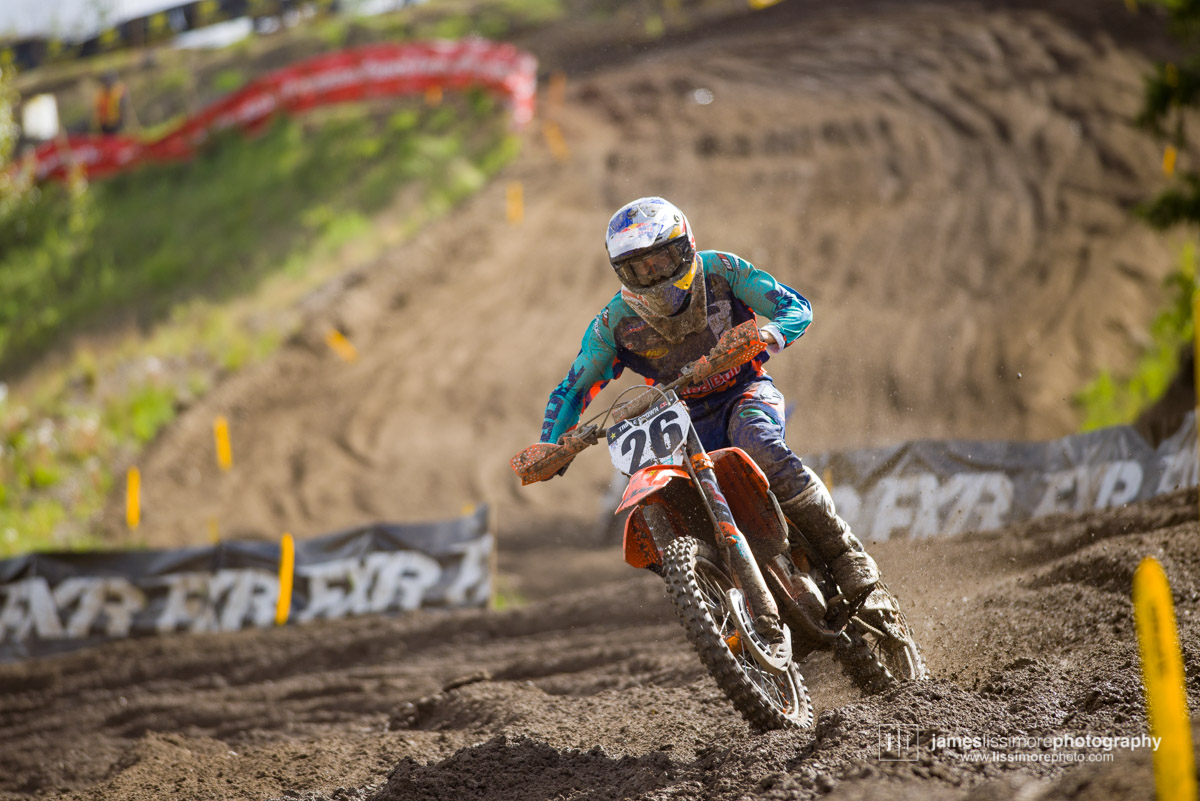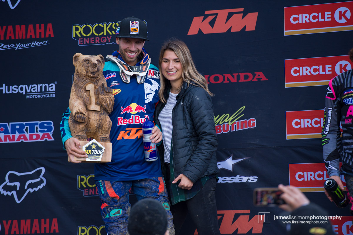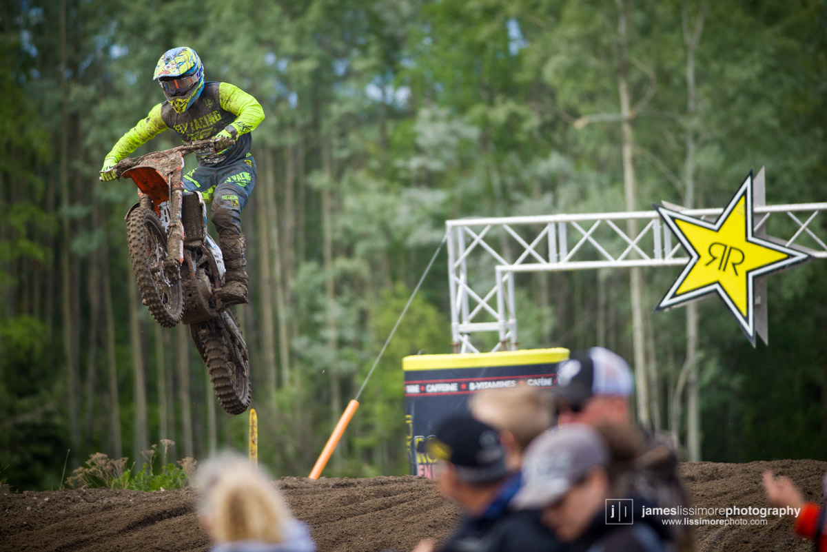 Since his heroics at the MXdN in Italy in 2016, it’s been a tough year and a half for Kaven Benoit, as injuries pretty much wiped out his 2017 season. He made it through the first two rounds unscathed and really started to hit his stride at Prince George. After finishing 2nd in moto one, he grabbed the hole shot and led wire to wire in moto two to take his first National win in two years.