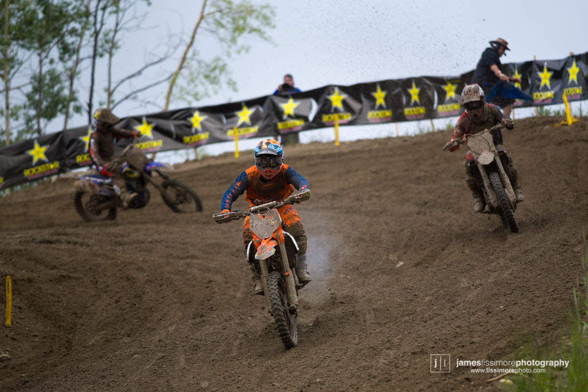 X-Games Snowbike gold medalist, Brock Hoyer, used to be a Top 10 Canadian MXer, so for Prince George, he unbolted the track and threw a tire back on his bike and finished 10th overall.Matt Goerke has won three Canadian titles by always being in the mix. He proved that again in PG by winning the first moto convincingly and then backing it up with a 3rd in moto two, for 2nd overall. With Colt’s bad day, he’s now only 4 points out of the title lead.