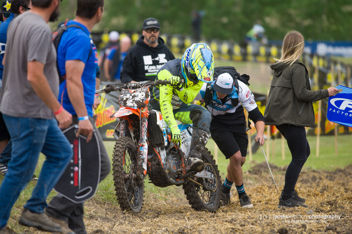 Rough day for Josh Osby. He blew up an engine in practice and then had shifting issues with the replacement engine in moto one. A DNF-5 is not helping his championship hopes.