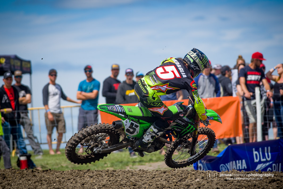 Tyler Medaglia had a great first moto, keeping Benoit in sight for most of the moto on his way to second. A crash in moto two left him fighting to come back to 15th.