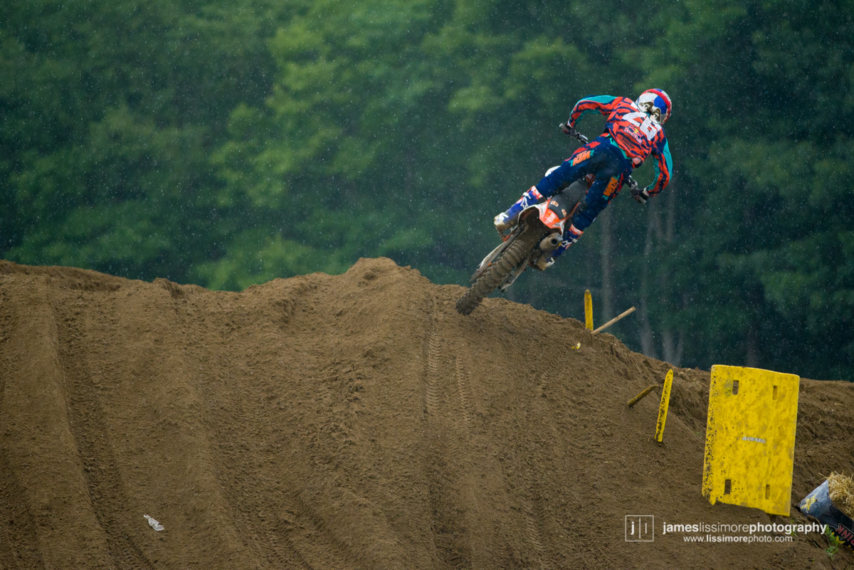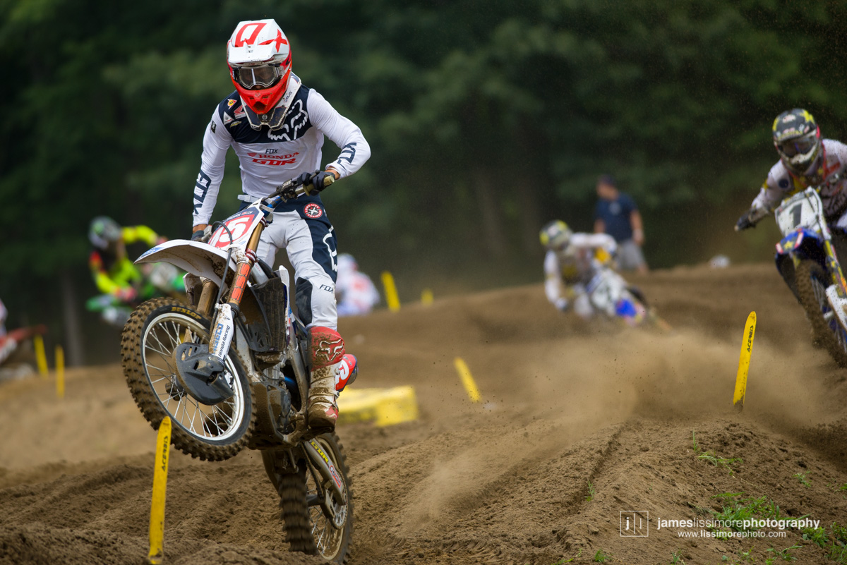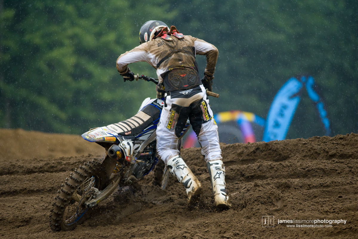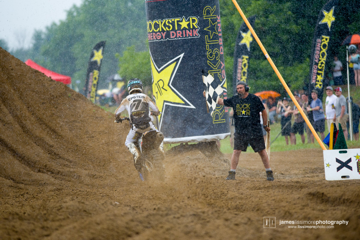 It started raining during the first 450 moto and Epstein takes his first moto win of the season through the rain drops.