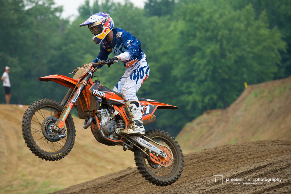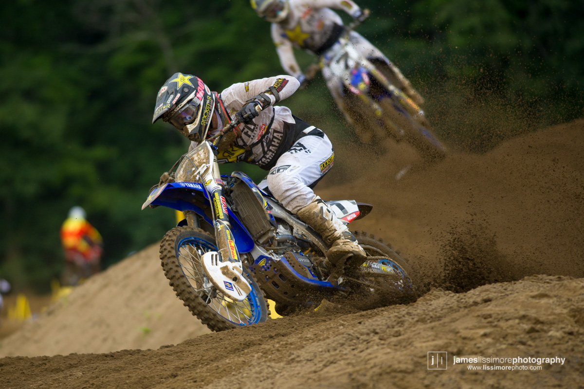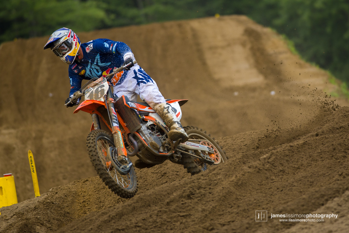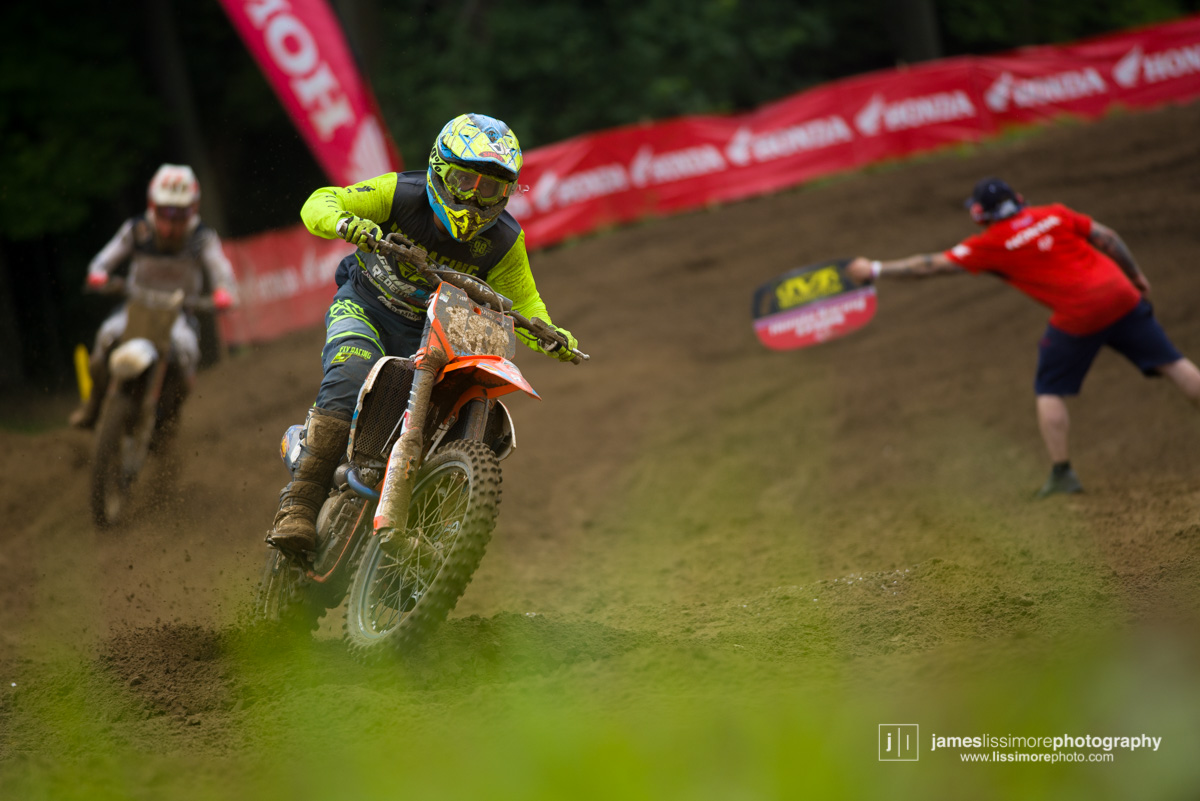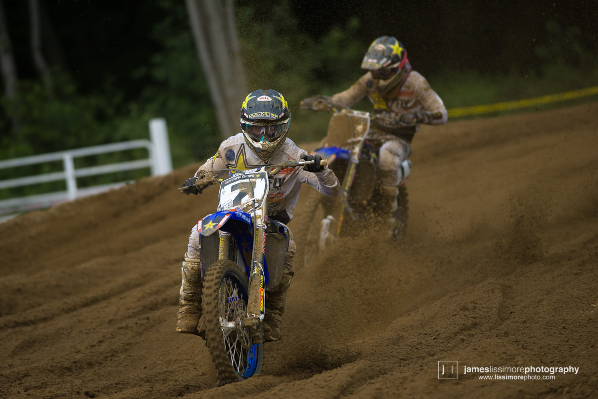 It started raining during the first 450 moto and Epstein takes his first moto win of the season through the rain drops.