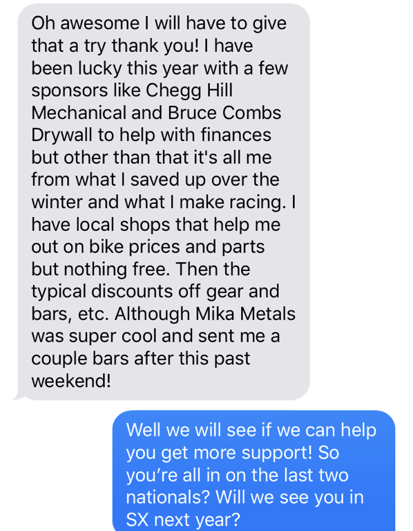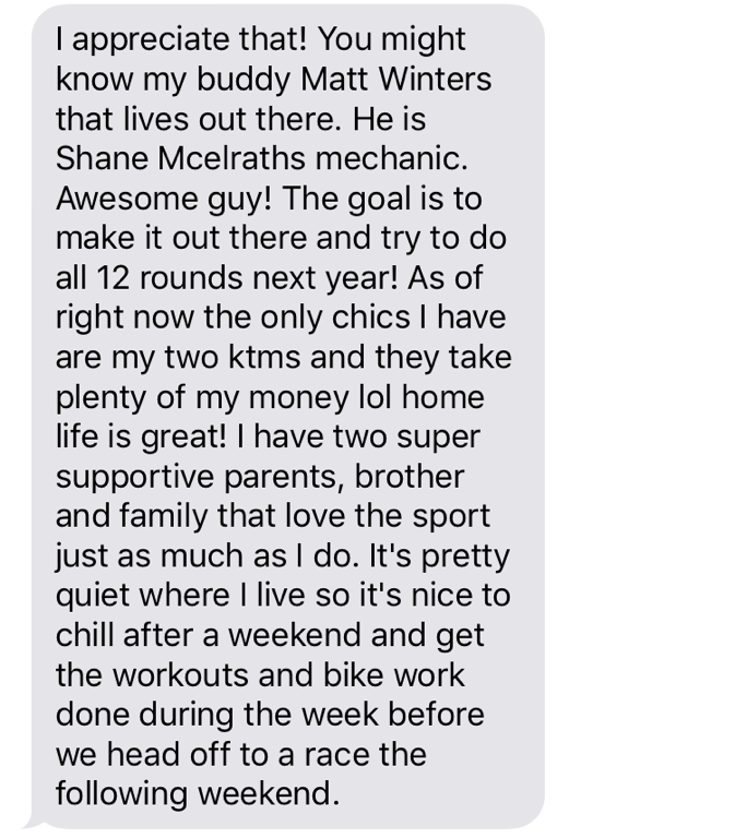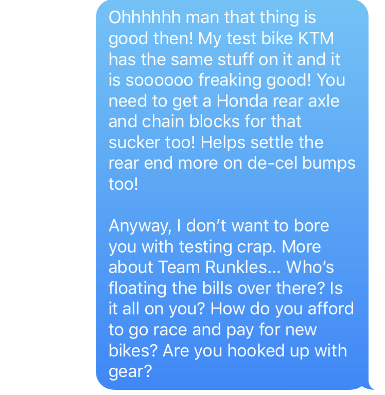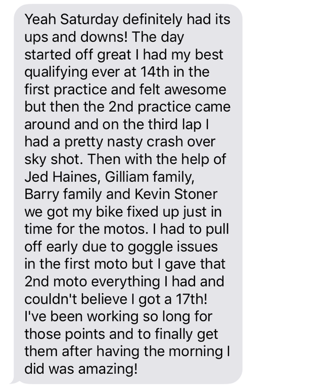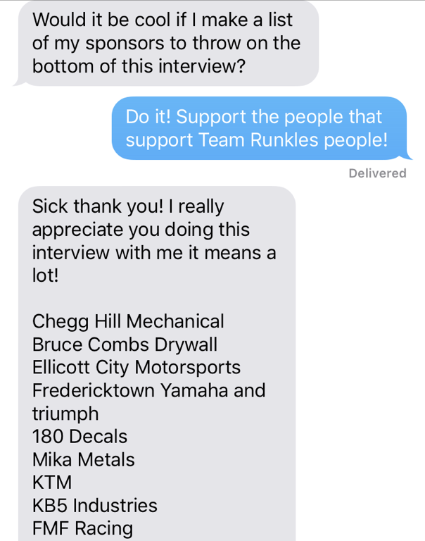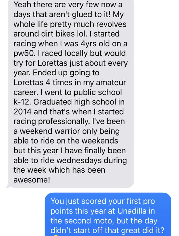I decided to finally get some quality texting time in with my guy Jake Runkles #270 recently. JakeĀ earned his first set of pro points this year in the second moto at Unadilla, going 37-17 for 21st overall. That didn’t come easy though as you can see from his Instagram video (@jakerunkles270). Just in case you all didn’t know, I am a big time Team Runkles supporter because he seems like a hard working, down to earth kid, that is out there grinding it out with the world’s best riders. Read our interview below and see for yourself! #Team Runkles