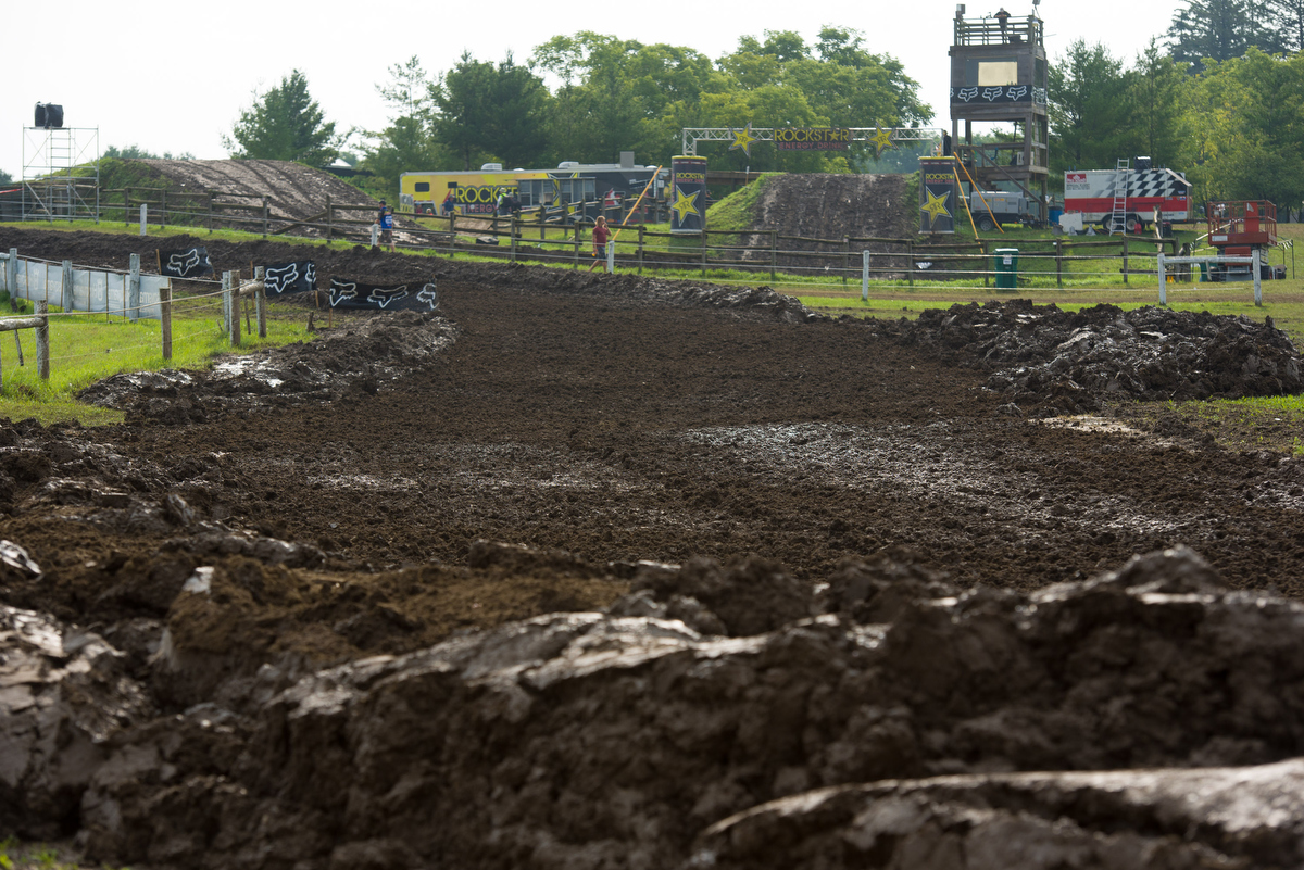 Heavy rains meant we woke up to this for the final round of the 2018 Rockstar Energy MX Tour series.I feel like Gauldy made this sign.