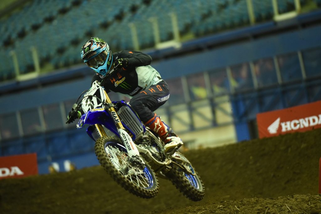 Colt Nichols looked great out there with the second best time of the day. Filthy Phil debuted his new Rockstar OTSFF Yamaha ride and was still setting his bike up the way he wanted to during practice. New FXR gear for Phil as well that I should probably get a % of.KTM Canada’s Kaven Benoit isn’t an indoor specialist but in front of his home fans, he’ll be the popular favorite.Why not run another one of Phil?JGR Suzuki’s Alex Martin was third fastest in the 450 class in the second practice on his 250. #TrollTrainCanada’s MX2 MX champ Jess Pettis topped the 250 times todayMookie Stewart was the fastest rider in every one of his practices today and is the favorite for the overall win.RJ Hampshire had an issue with his bike that caused a crash in practice one but they got it sorted out for the other two practices.Canada’s MX1 champ Colton Facciotti working on his indoor skillsMike Brown is here everyone.Nichols looks to battle with the #27 for wins.Hanny is here and seems to be enjoying himselfHey, look who’s back! Mike Alessi is hereMore PhilCedric Soubeyaras will be a sneaky good choice for a podium tonightMatt Goerke was fastest in one of his practicesFrench SX vet Thomas Ramette is here also