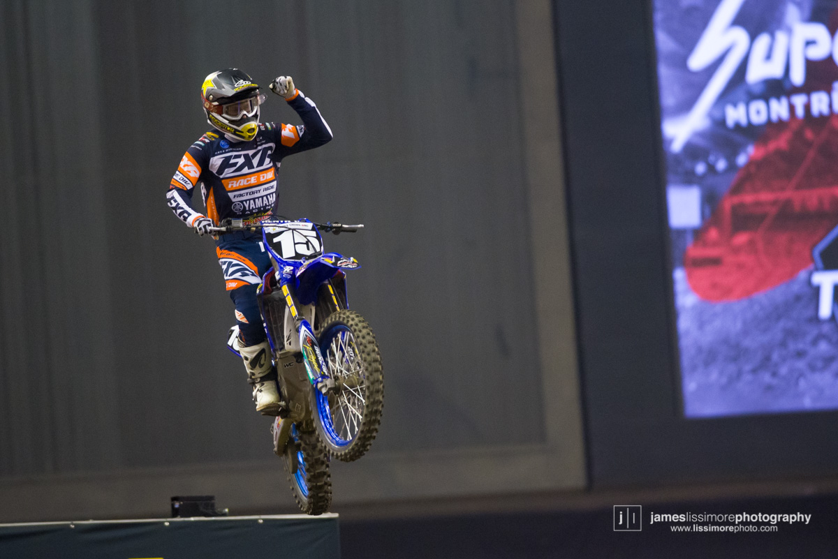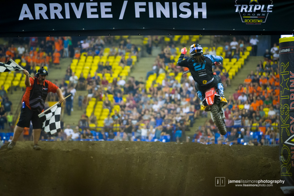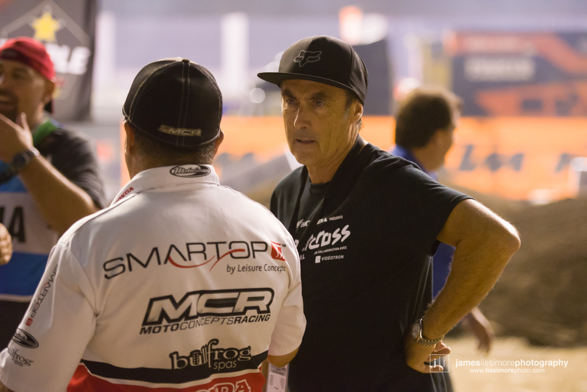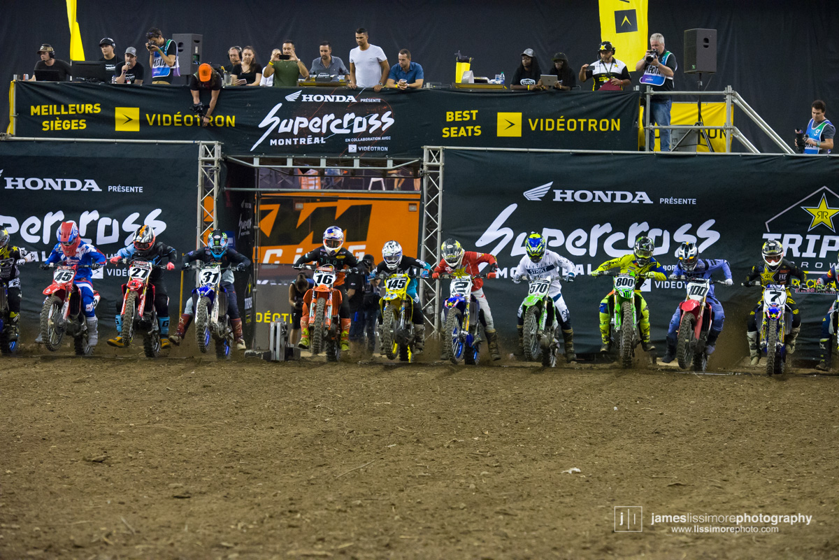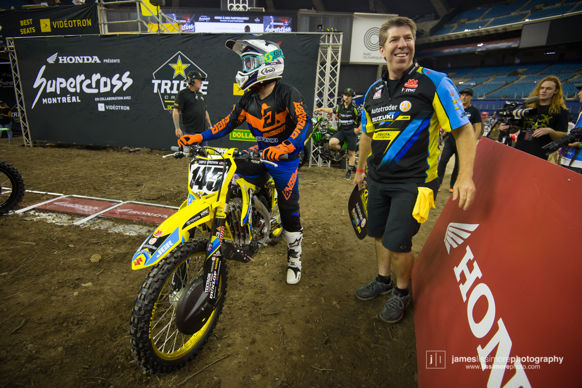 Olympic Stadium in Montreal was the site of the race and although it looks pretty cool, it’s best by date has come and gone for sure.Lissimore actually makes the inside of the stadium seem cool here.Eric Peronnard was the man who got all the American riders there and made sure everything ent smooth behind the scenes.GDR Honda team owner Diggs puts on some grip tape on Facciotti’s bike and he also wrenched for Dylan Wright. Then he bought pizza for the everyone after the main. Yay DiggsLots of controversy about Alex Martin racing his 250 in both classes. The team had white on black #26’s for Martin but then he was booted to 450 class and needed numbers. So GDR Honda had some backgrounds on the truck from when Jake Nichols raced for the team. Bingo, bango- Martin became #145Hot Dog Vendor laughs and laughs about trying to replace Pettis in 2019.Speaking of Pettis, he easily won the MX2 main event. What a year for for Jess.Canada MX has stepped up this year with the addition of the stand behind the starting lineHanny was there on his new Honda marketing ride. But his MX suspensionheld him back out there.Goerke led most of the second main event until Mookie caught him from a ways back. For about a lap it was a great race between them.Peronnard brought in a couple of French SX vets in Cedric Soubeyras and Thomas Ramette. And they were on Suzuki’s at that. Combined with Martin, they tripled the amount of Suzuki’s that raced in all of Canadian moto this year.Alex “Nichols” Martin was pretty good on the smaller bike out there. He’s very stoked on his 2019 machine although he rode the 2018 in Montreal.Facciotti didn’t have the night he wanted to under the lights and lost a few points to Thompson in the 100K Rockstar Triple Crown chase.Ramette, the true Rammer out there.Filthy Phil debuted his Rockstar OTSFF Yamaha ride and new FXR gear. He crashed in the final main event and then got run over by Hampshire.T-Dags got a great start in the final main event and led a lap and everything.RJ Hampshire was there, had some bike issues, ate poop because of them and then got put down by Hanny in main number 1. Rough night for the #36.Colt Nichols was very good all day long, just a tick off Mookie.These two had some great races in almost every main event with Goerke getting the edge for third.Mike Brown was there! And although he’s 43 years old and wasn’t that comfortable on the full-on SX track he did ok.Mookie was the man in Montreal going 1-1-1.This man wanted to light me on fire just a few years ago. We’re good now though!