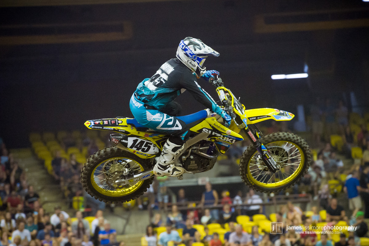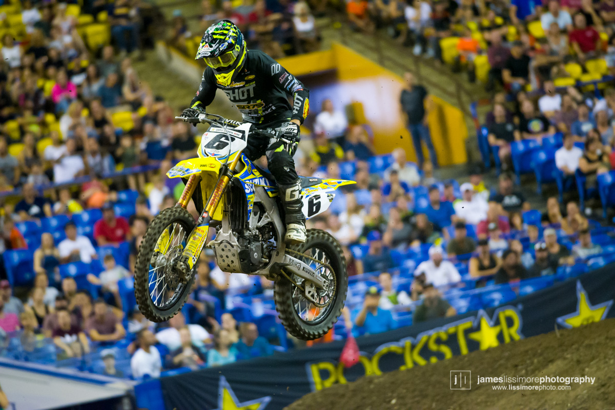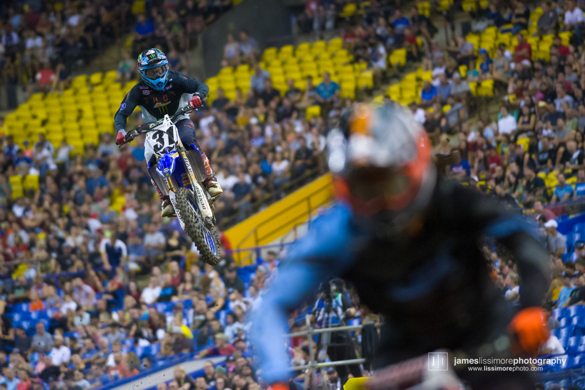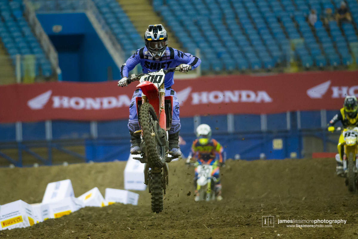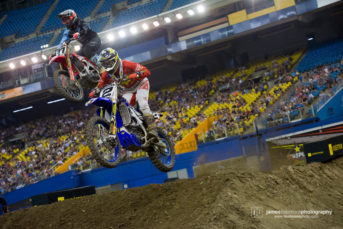 Olympic Stadium in Montreal was the site of the race and although it looks pretty cool, it’s best by date has come and gone for sure.Lissimore actually makes the inside of the stadium seem cool here.Eric Peronnard was the man who got all the American riders there and made sure everything ent smooth behind the scenes.GDR Honda team owner Diggs puts on some grip tape on Facciotti’s bike and he also wrenched for Dylan Wright. Then he bought pizza for the everyone after the main. Yay DiggsLots of controversy about Alex Martin racing his 250 in both classes. The team had white on black #26’s for Martin but then he was booted to 450 class and needed numbers. So GDR Honda had some backgrounds on the truck from when Jake Nichols raced for the team. Bingo, bango- Martin became #145Hot Dog Vendor laughs and laughs about trying to replace Pettis in 2019.Speaking of Pettis, he easily won the MX2 main event. What a year for for Jess.Canada MX has stepped up this year with the addition of the stand behind the starting lineHanny was there on his new Honda marketing ride. But his MX suspensionheld him back out there.Goerke led most of the second main event until Mookie caught him from a ways back. For about a lap it was a great race between them.Peronnard brought in a couple of French SX vets in Cedric Soubeyras and Thomas Ramette. And they were on Suzuki’s at that. Combined with Martin, they tripled the amount of Suzuki’s that raced in all of Canadian moto this year.Alex “Nichols” Martin was pretty good on the smaller bike out there. He’s very stoked on his 2019 machine although he rode the 2018 in Montreal.Facciotti didn’t have the night he wanted to under the lights and lost a few points to Thompson in the 100K Rockstar Triple Crown chase.Ramette, the true Rammer out there.Filthy Phil debuted his Rockstar OTSFF Yamaha ride and new FXR gear. He crashed in the final main event and then got run over by Hampshire.T-Dags got a great start in the final main event and led a lap and everything.RJ Hampshire was there, had some bike issues, ate poop because of them and then got put down by Hanny in main number 1. Rough night for the #36.Colt Nichols was very good all day long, just a tick off Mookie.These two had some great races in almost every main event with Goerke getting the edge for third.Mike Brown was there! And although he’s 43 years old and wasn’t that comfortable on the full-on SX track he did ok.Mookie was the man in Montreal going 1-1-1.This man wanted to light me on fire just a few years ago. We’re good now though!