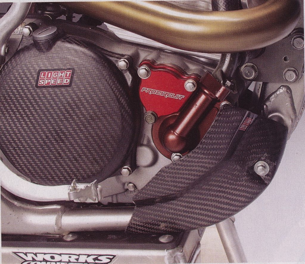 Just changing the oil was also a nightmare, due to Suzuki’s inscrutable decision to incorporate the oil filter and water pump into one unit. This meant that if you wanted to change the oil, you also had to drain the coolant. Thankfully, aftermarket companies like Pro Circuit were quick to come out with improved water pumps that helped the overheating issue and added a separate cover for the oil filter.