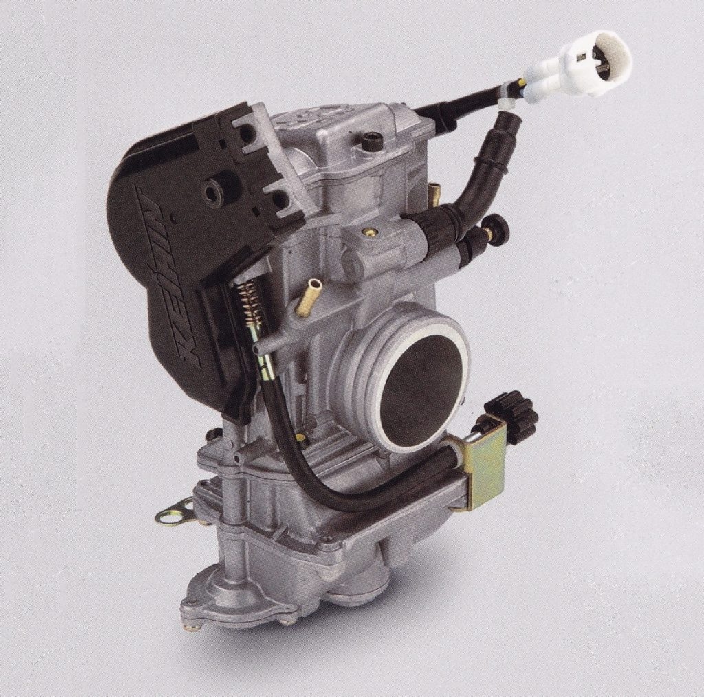 Before fuel injection made its way to motocross, the Keihin FCR carburetor was the gold standard of the four-stroke world. When properly jetted, this carb allowed four-strokes to provide a snappy and responsive style of power unheard of in the thumpers of yore. Photo Credit: Kawasaki