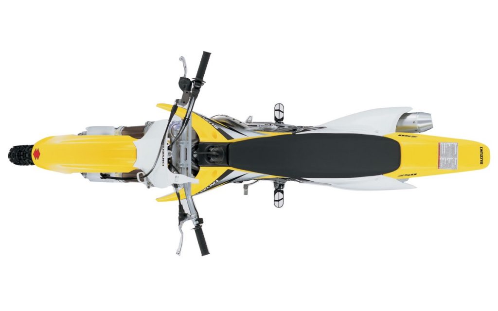 The frame used on the KXF/RM-Z stuck to the steel perimeter design Kawasaki had employed on its motocross machines since 1990. Even though the overall design was familiar, a new “D-Section” on the top of the frame narrowed the pilot compartment considerably over previous perimeter designs. Photo Credit: Suzuki