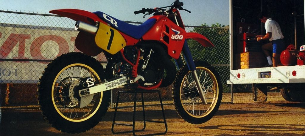 In 1987, dinosaurs still ruled the earth, and none of their kind was as mighty as the scenery-blurring Honda CR500R. Like an iron fist wrapped in a velvet glove, the big five-oh-oh offered mind-bending power, combined with newfound civility. It was still a bear to start and its shock was a work-in-progress, but for hardcore racing, there was not a better Open class machine available in 1987.