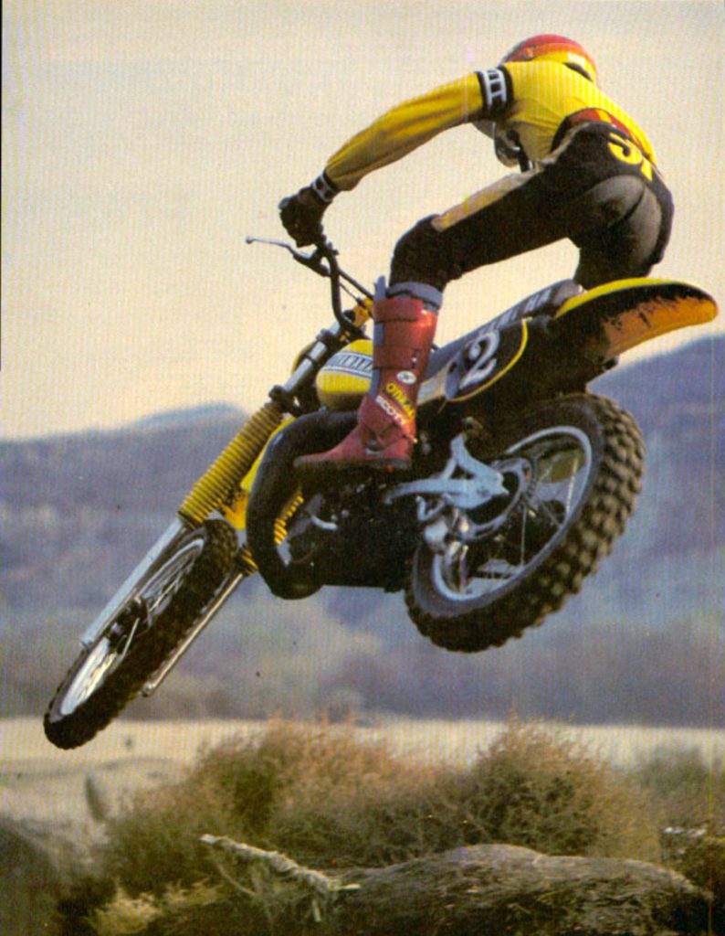 With ample power and a light 214-pound fighting weight, the 1980 YZ250G was a capable flyer. Photo Credit: Cycle World