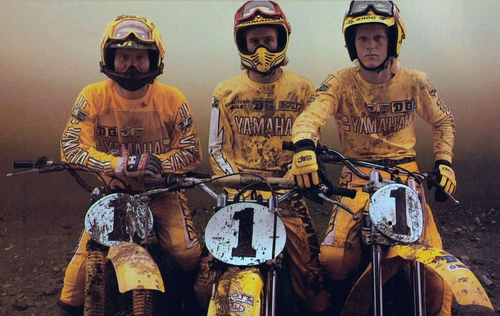 Yamaha was a powerhouse in the late seventies, dominating racing indoors and out with riders like Rick Burgett (left), Bob Hannah (middle) and Broc Glover (right) at the controls. Photo Credit: Yamaha