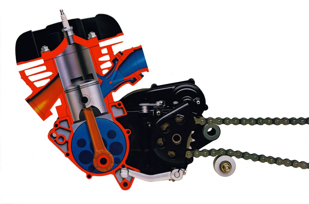 An all-new 246cc two-stroke motor for 1980 reduced the size and weight of the power plant, while boosting output significantly. Photo Credit: Yamaha