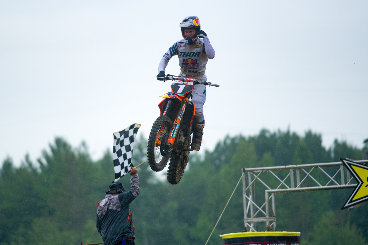 Since the three week break between the West and East portions of the schedule, Jess Pettis has been improving every weekend. The defending champ finally broke through at Deschambault to take the Moto win and his first overall win of the season.