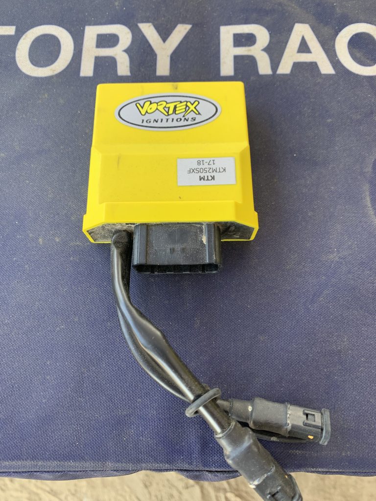 Engine: If you’re looking to get more out of your engine without diving into the engine too much there are a couple relatively inexpensive mods you can do. A stock ECU re-map from Jamie at Twisted Development can get you some added RPM response along with some increased pulling power out of corners. If there is one area of the engine that the FC250 needs helps with it’s the low end RPM response and pulling power. The Husqvarna is NOT a torque monster, but instead loves to be ridden in the mid-top end range. With the stock ECU re-map the Husqvarna will get some more “pop” out of corners, have a free-er engine rev feel, as well as pull you out of the corner harder than the stock maps. The beauty is that you still have two maps to choose from, but now both newly programmed maps have more pull than the stock maps provide. It’s a relatively low cost item for the performance gain. Of course if you have the money a Vortex ignition is always a good idea, but that also will set you back 800-1000 bucks. The Vortex will give you increased power everywhere in the RPM range and can make your engine have an even free-er rev feel, which makes the FC250 more exciting to ride. A lot of times a Vortex ignition, muffler system, and suspension work is all I ever do to my race bikes.